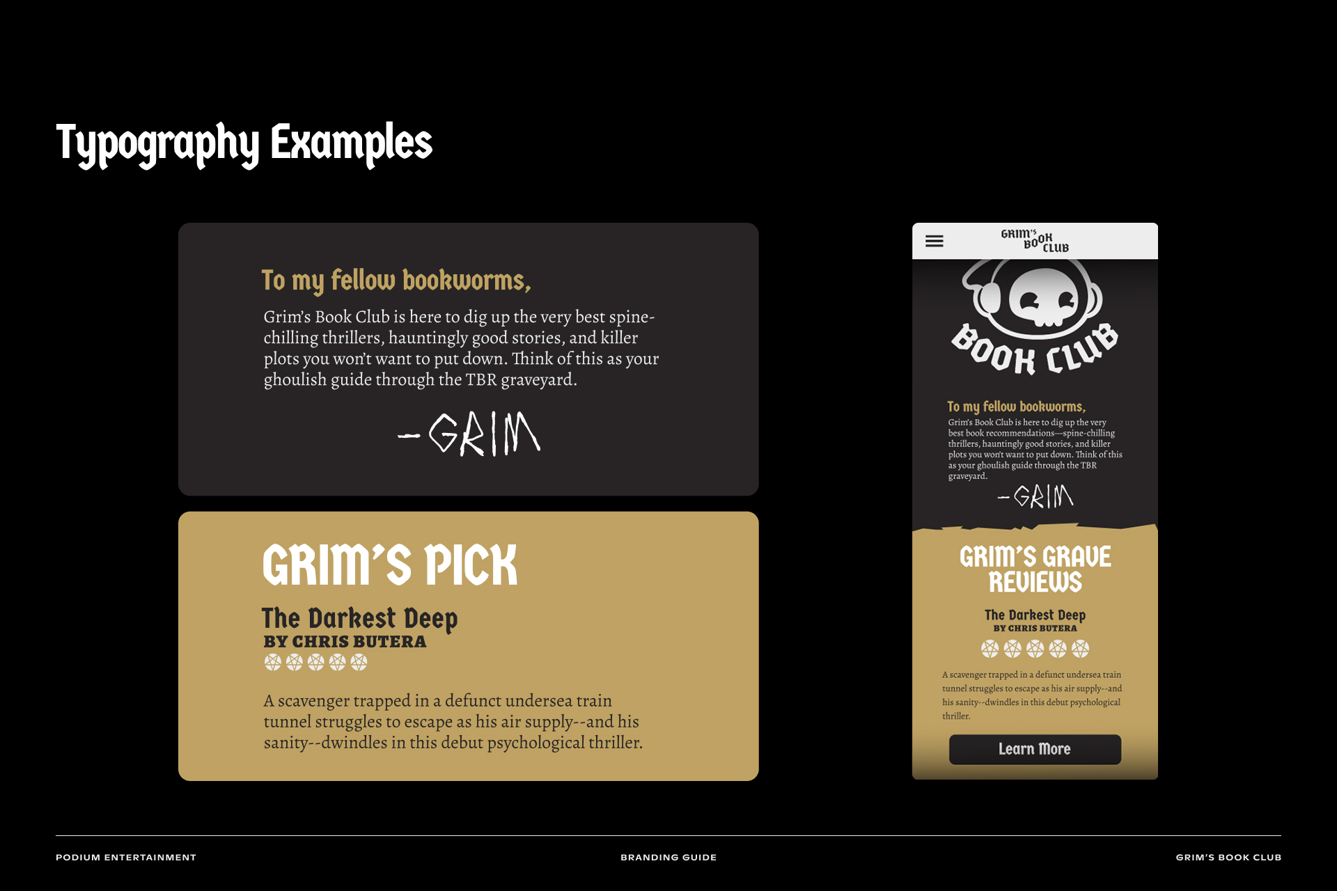 Grim’s Book Club is an audiobook discovery campaign, aimed towards horror and mystery/thriller titles.