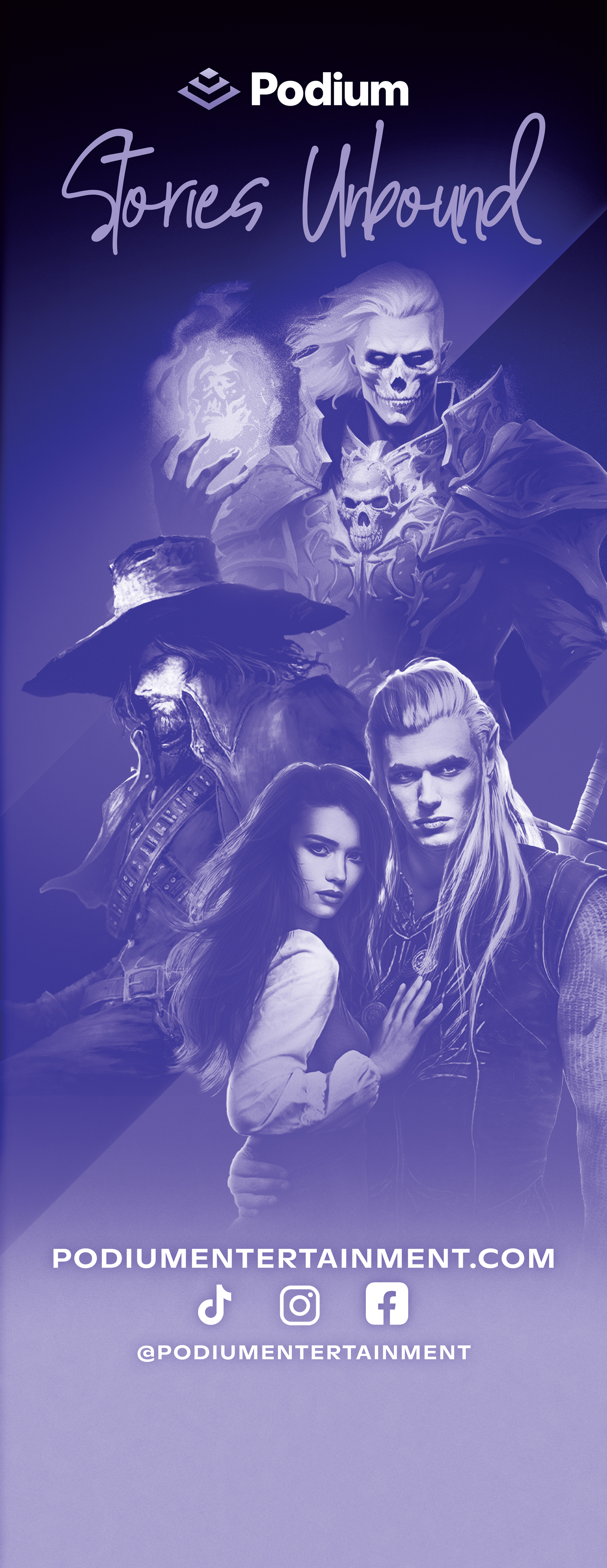 Convention banner designed to represent the company’s wide range of genres. Executed photo editing and visual styling while maintaining brand consistency across the final asset.